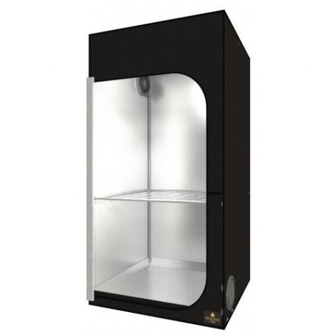 Les DARK ROOM II sont doublées d'un tissu en mylar martelé (210D) réfléchissant à 95%, permettant d'augmenter l'intensité lumineuse et d'améliorer la répartition de la lumière. Etanche à la lumière et imperméable, pré-équipée pour l'extraction et pour la ventilation, les tentes sont munies de tubes permettant de suspendre des lampes et des filtres à charbon.